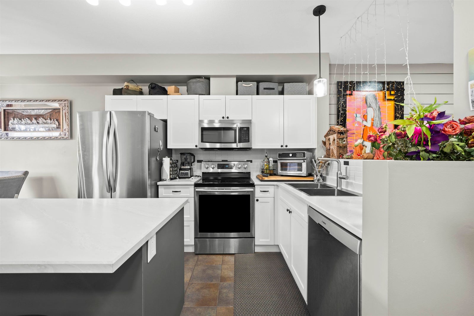 oBeautifully renovated home in Encore at Hillcrest! This 2 bedroom + den (easily a 3rd bedroom) is in one of the best spots in the complex, with walk-out access to a south-facing yard featuring a nice deck and low-maintenance turf backing onto a park and playground. The kitchen has been tastefully updated with newer appliances, two-tone cabinetry, and an island. New laminate flooring, and charming details throughout make this home truly stand out. Tandem garage fits two cars with extra storage, plus EV charger. Two pets welcome with no size restrictions. Just steps to Hillcrest Elementary, Save-On, Tim Hortons, medical offices, banking, restaurants, future skytrain stations and more. A warm and inviting place to call home! OPEN HOUSE: Saturday April 4th, 2026 (2-4pm)